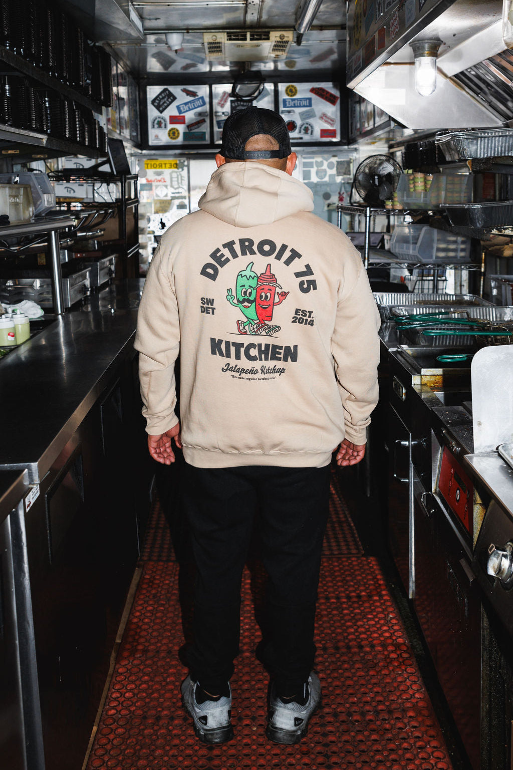 A limited-release collectible inspired by the sauce that helped put Detroit 75 on the map. This heavyweight hoodie blends premium construction with a playful nod to our famous Jalapeño Ketchup — made for fans who know the sauce, the kitchen, and the culture.